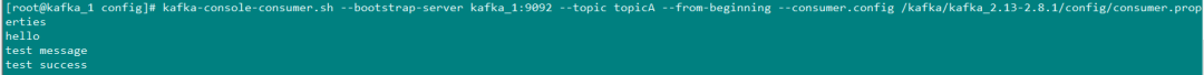 # kafka-console-consumer.sh --bootstrap-server kafka_1:9092 --topic topicA --from-beginning --consumer.config /kafka/kafka_2.13-2.8.1/config/consumer.properties