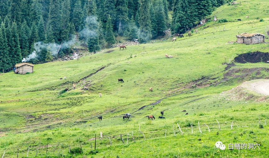实际上自驾的朋友可以在三个地方看到喀拉峻大草原,第一处是可以从特克斯县城西北的姑娘坟(阿克塔斯村附近的山坡上)远眺喀拉峻,也可以在西喀拉峻景区观看。稍微深度一点的自驾游可以前往天山脚下的琼库什台村。而要想再深入草原深处,就只能徒步了。