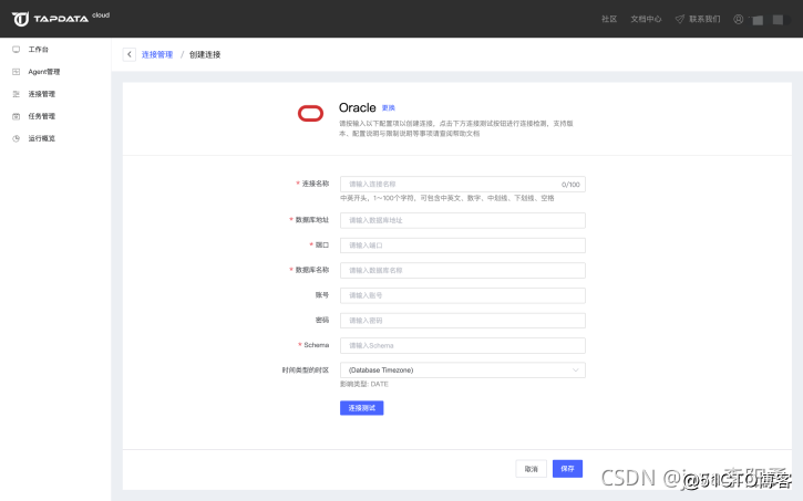 【数据库名称】:tapdata 数据库连接是以一个 db 为一个数据源。这里的 db 是指一个数据库实例中的 database,而不是一个 schema。