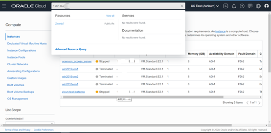 1. 将要查询的Reserved Public IP输入或粘贴到Console界面上面的Search Bar