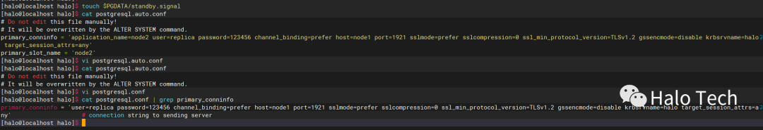 primary_conninfo = 'user=replica password=123456 channel_binding=prefer host=node1 port=1921 sslmode=prefer sslcompression=0 ssl_min_protocol_version=TLSv1.2 gssencmode=disable krbsrvname=halo target_session_attrs=any'