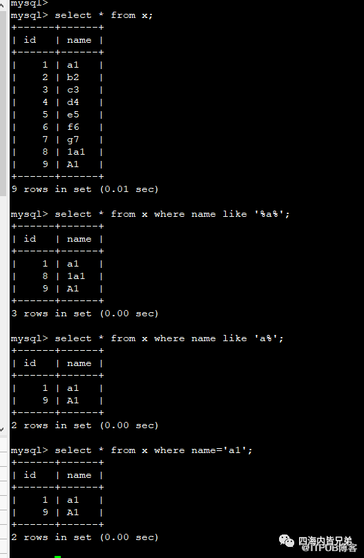 精确查询a1的时候返回a1,模糊查询的时候没有A1。这是我预期的。