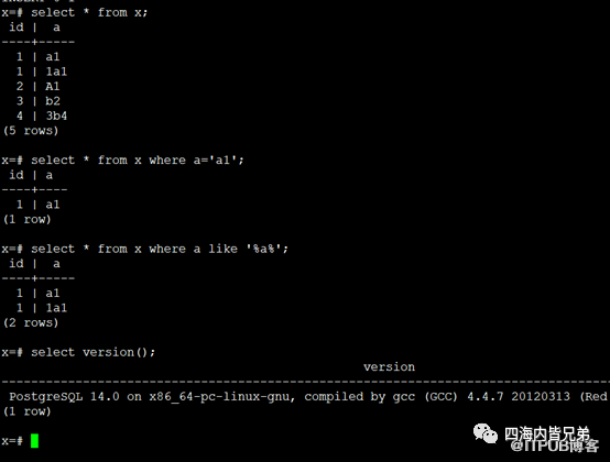 这个结果说实在的有点让我吃惊。显然MySQL是没有区分。这时候我通常会引入PostgreSQL来进行对比。