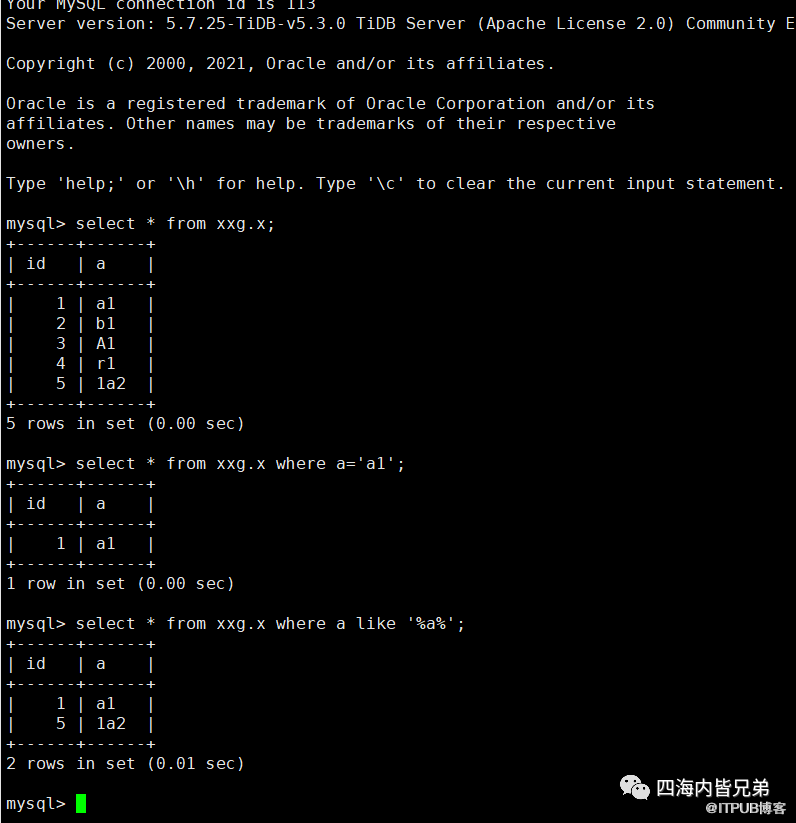 在Tidb下会不会也继承呢?在tidb5.3的场景下,也是查询区分大小写的。可见TiDB在这点上是和Oracle、PG的执行器是一样的。