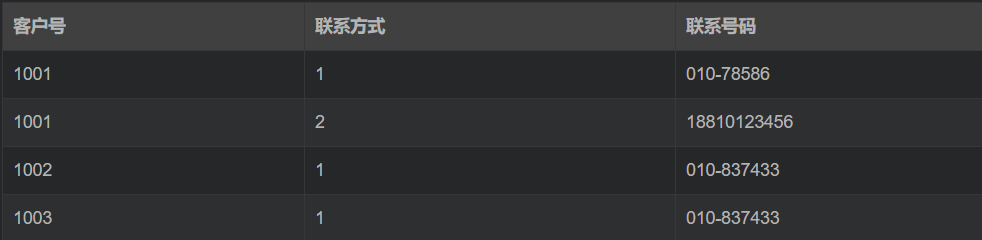 有个从表A,客户号、联系方式是联合主键,其中联系方式,1-座机,2-手机号码