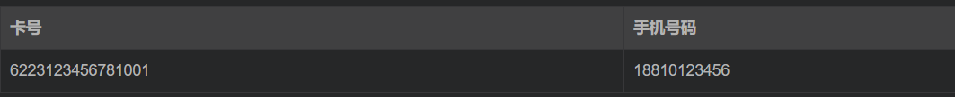 如果想要查询所有卡号对应的手机号码两个字段,很简单,SQL语句如下: