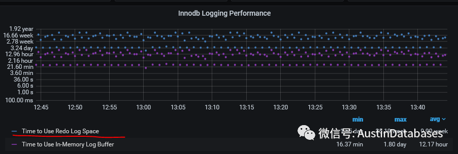 类似redo log space 的监控的原理可以总结为通过 ,innodb_os_log_written innodb_log_files_in_group * innodb_log_file_size 来获得如下的redo log 消耗的信息。