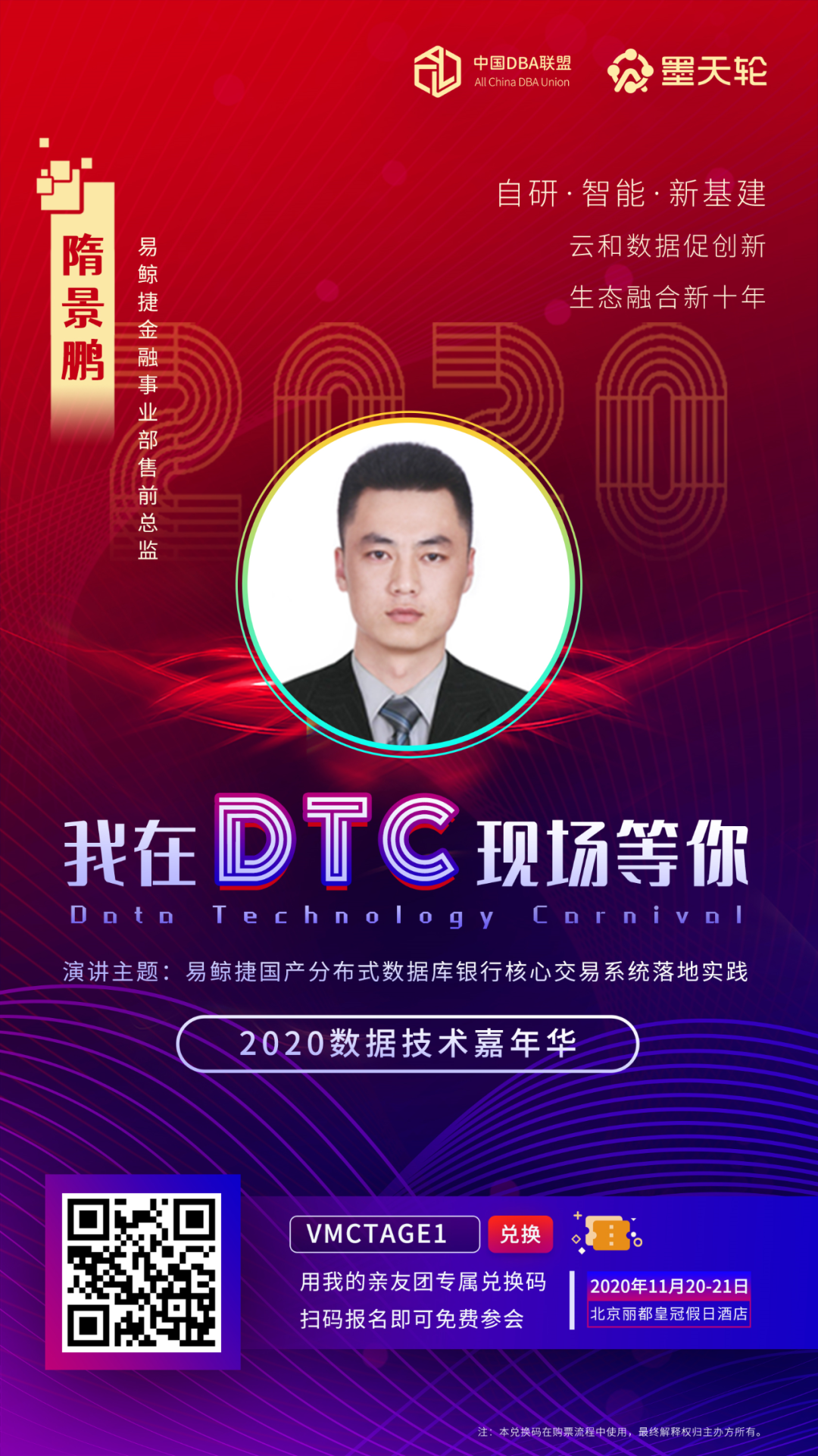 2020年11月20-21日,一年一度的数据技术嘉年华(DTC)即将盛大开启,今年正值DTC举办的第十个年头,大会以“自研·智能·新基建——云和数据促创新 生态融合新十年”为主题,打造“开源自研、智能运维、智能自治、新基建、用户实践”五大模块、设置1个主会场、12个分会场,汇聚了学术精英、数据库领域技术大咖、行业专家等。