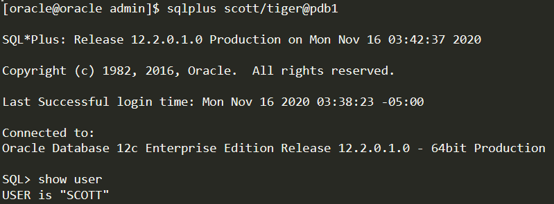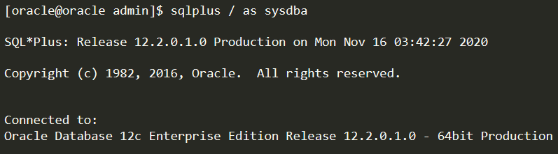 操作系统身份验证模式下,管理用户连接可以使用任何用户名和密码访问数据库,例如在使用SQL * Plus连接时使用AS SYSDBA子句。连接的示例如下