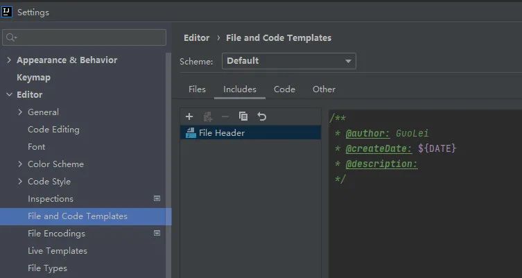 如果想创建类的时候,自动在每个文件的头部添加注释,可以在IDEA使用下面的方法做好设置。
