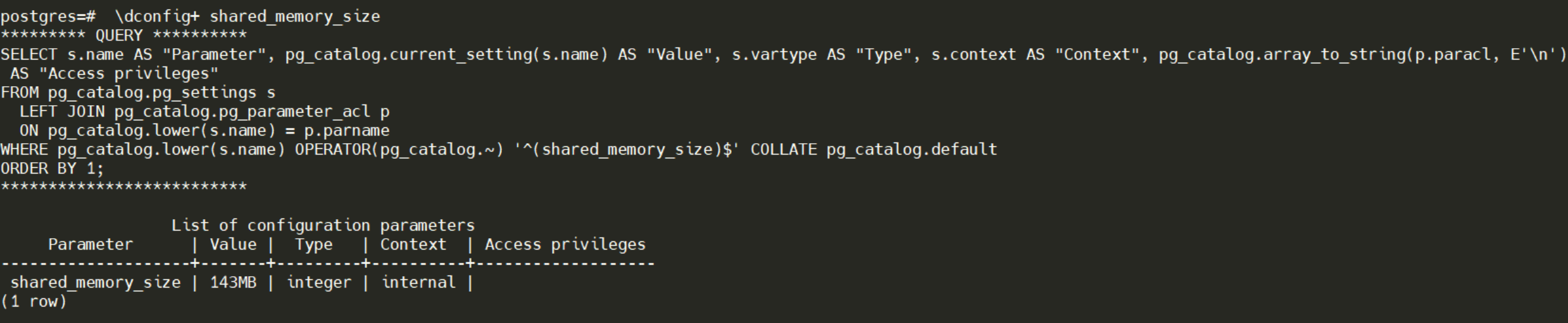 这部分的代码比较简单,但是新增\dconfig命令的目的属实有点看不懂了,感觉有点鸡肋了,因为在psql里面有show命令,在外面有pg_config命令,都有类似\dconfig的功能。