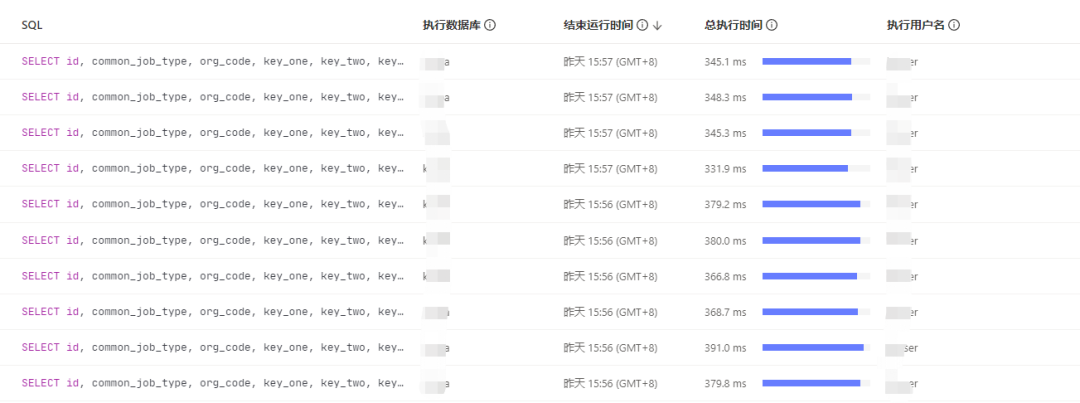这个规模不算大,整个过程应该是非常顺利的。但当系统在TiDB上跑起来后,通过Dashboard观察到有一条SQL非常规律性地出现在慢查询页面中。感觉必有蹊跷。