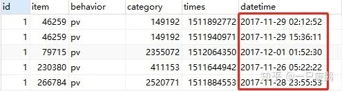 select behavior,count(*) as 行为次数 from user group by behavior;