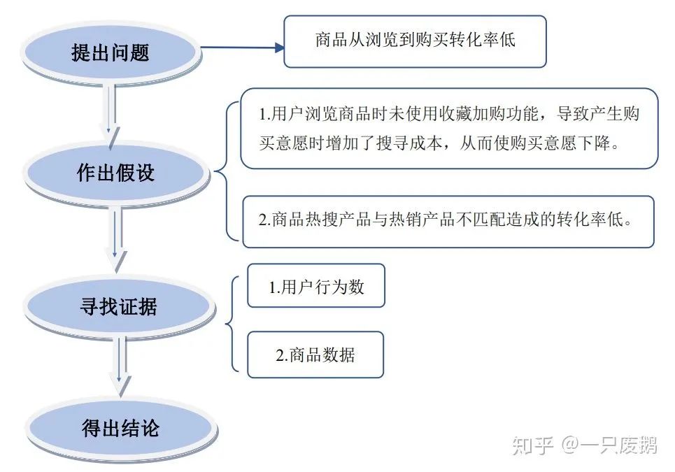 假设一:用户浏览商品时未使用收藏加购功能,导致产生购买意愿时增加了搜寻成本,从而使购买意愿下降。 假设二:商品热搜产品与热销产品不匹配造成的转化率低。