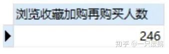 select count(1) as 浏览后加购再购买人数 from 购买流程 where pv>0 and fav=0 and cart>0 and buy>0;