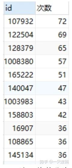 SELECT id,count(id)as '次数' from user where behavior='buy' group by id order by 次数 desc;