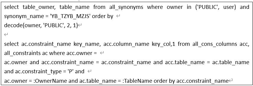 sql语句select ac.constraint_name key_name, acc.column_name key_col,:"SYS_B_0" from all_cons_columns acc, all_constraints ac where acc.owner = ac.owner and acc.constraint_name = ac.constraint_name and acc.table_name = ac.table_name and ac.constraint_type = :"SYS_B_1" and ac.owner = :OwnerName and ac.table_name = :TableName order by acc.constraint_name执行非常频繁。