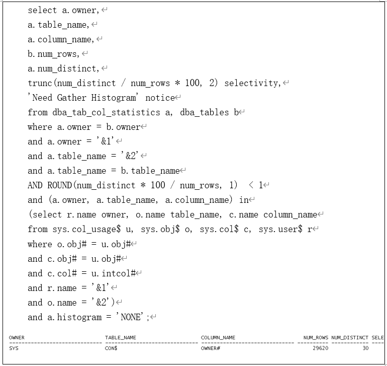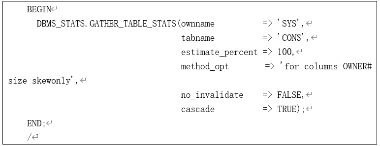 方法一:对CON$所在列OWNER#做列统计信息收集。