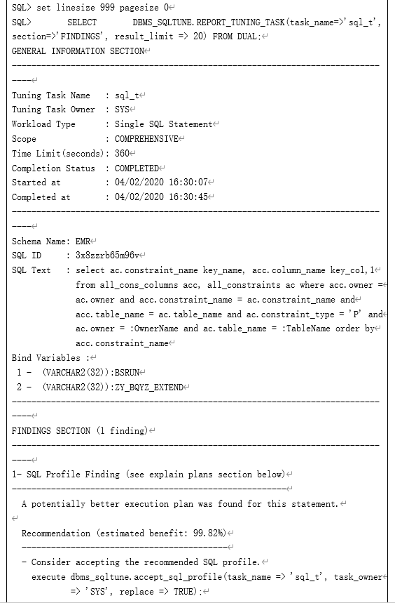但是由于客户不能从代码层面修改.NET端语句缓存。所以只能从sql查询语句性能层面进行优化。在数据库层面,通过SQLTUNE的优化建议对sql查询语句进行优化和对统计信息进行重新收集。