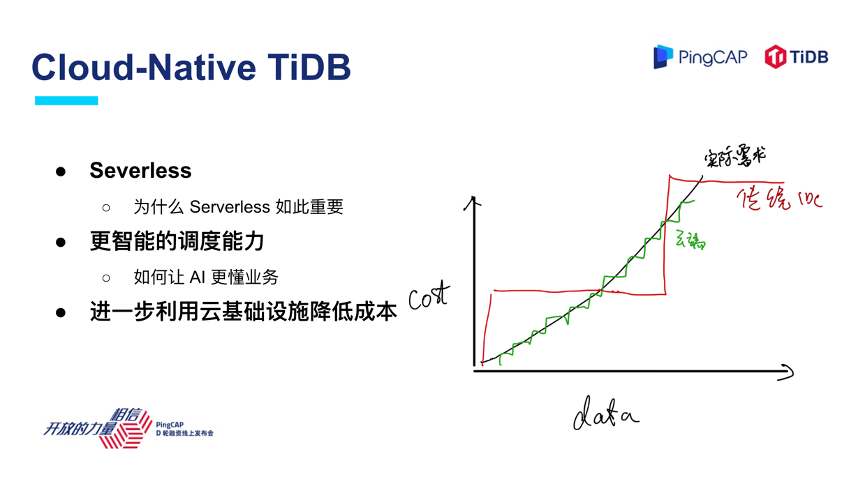 我们每一个分享最后的部分会讲讲到底未来应该是什么样子的,我觉得在比较近的未来,TiDB 一个重要的方向是更加云化。为什么云如此重要?数据库云化的背后我觉得可以展开几点: