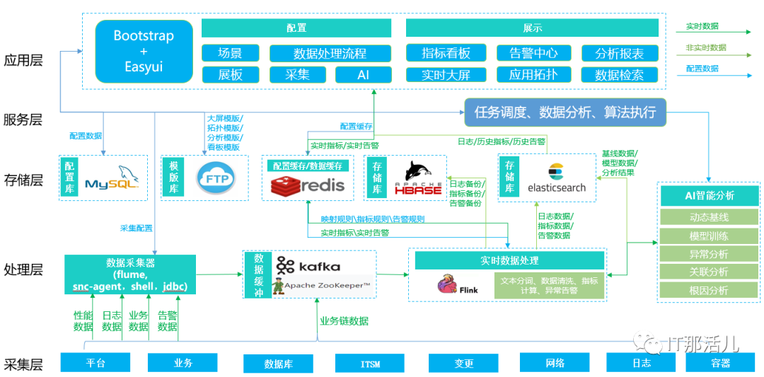 这些指标数据集成在端到端可视化监控大屏中,也被各系统健康度模型所使用。系统出现告警后,运维人员往往需要各类细项指标帮助其进行分析,帮助快速做一些问题诊断,灵活高效的数据指标生成体系能帮助运维人员快速采集、展现他们关注的指标,运维人员可通过这些指标快速了解当前系统的运行负载情况,以及各业务、应用集群、网络、数据库等组件的运行状态。