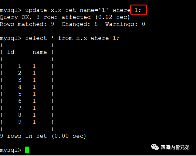 那么如果本来想 update t set name='1' where id=1;结果写错了update t set name='1' where 1呢?