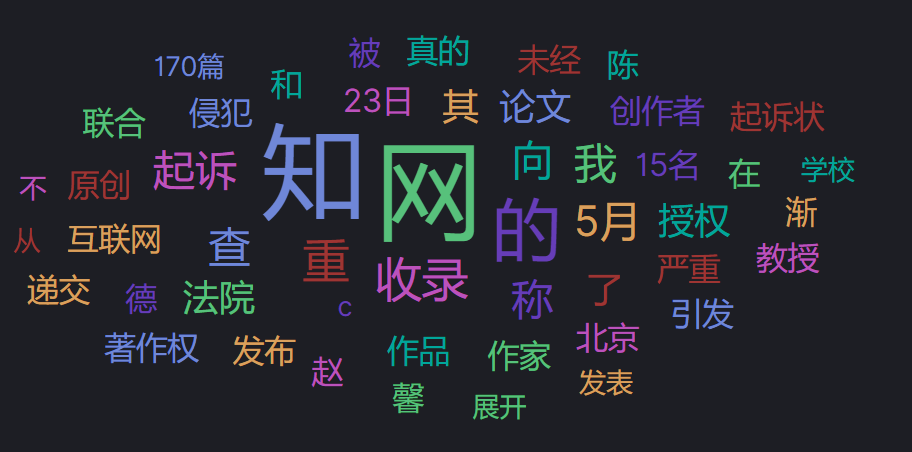 此处仅拿2022年5月24日早晨 6:00 微博搜索“知网”得到的前20条动态信息的词云说话。