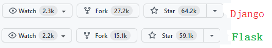 截止:2022-05-24,GitHub Flask 框架 star 数:59.1k。