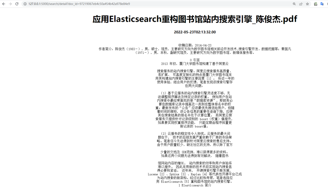 本文是以“知网”的文档检索出发,构建了本地知识库系统,验证了 Elasticsearch 技术栈结合 Python Flask 构建知识库检索系统的可行性。