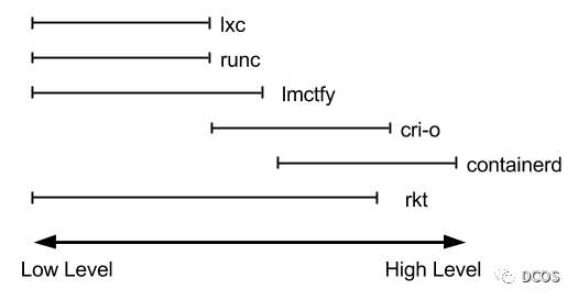 可以发现,容器运行时是相当复杂的。每个运行时都涵盖了从低级到高级的不同部分,如下图所示。