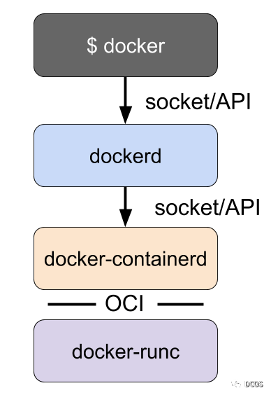 Docker最初实现了高级和低级的运行时功能,但这些功能后来被分解成单独的项目,如runc和containerd,以前Docker的架构如下图所示,现有架构中,docker-containerd变成了containerd,docker-runc变成了runc。