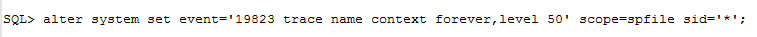 因此,我们可以了解event 19823的用途。对于空间容量比较小的主机,但是希望归档能够尽量保留在快速恢复区,以便留有足够的备份时间窗口,那么可以考虑把这个百分比调整到更大,比如90%,95%等。