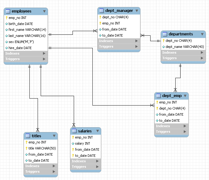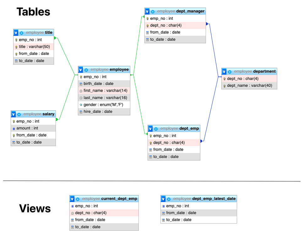 构建思路还是找有没有现成的数据集。大数据/机器学习那边有不少数据集,但因为没有看到 SQL 格式的,所以就需要手工处理。最后还是锁定在了 MySQL 官网上的 https://dev.mysql.com/doc/index-other.htmlMySQL 官网上绝大多数的样例数据库用的都是 Oracle 的 License,唯有 Employee 数据库 https://dev.mysql.com/doc/employee/en/ 用的是 Creative Commons Attribution,而且还放在了 GitHub 上。MySQL 其他几个数据库 menagerie, world, airportdb 趣味性更加强一些,但因为 License 的潜在风险就只能放弃了。不过从主题来说 Employee 也很合适,概念大家都很熟悉,而且是公司职业场景,也和我们的用户群更加契合。同时也可以运用到 Tenant mode 的场景,因为我们可以把每一家公司的 Employoee 对应到一个 Tenant。Employee 数据库还有一个吸引点,就是他还做了一个数据导入验证的 SQL 脚本,用来验证全部数据是否导入了。