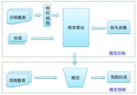 1),主要是评估训练好的推荐模型的质量(即模型预测的好不好、准不准,常用的评估指标有准确度、召回率等)。模型在上线服务之前需要评估该模型的准确度,一般是将样本数据划分为训练集和测试集,训练集用于训练模型,而测试集用来评估模型的预测误差(一般还会有验证集,用于调优模型的超参数)。