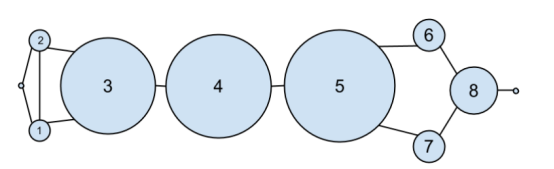另一种度量指标是中间性中心度(betweenness centrality),它可以用来找出经常位于其他节点对之间的最短路径中的人。具体而言,中间性中心度可以通过累加经过节点 i 的最短路径与所有两个节点之间的最短路径的比例来求出。