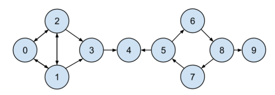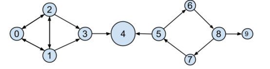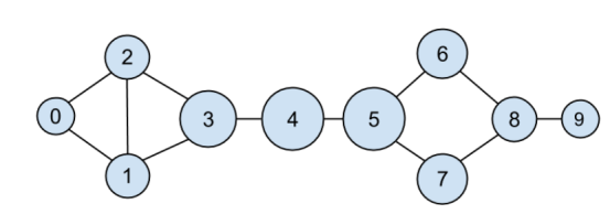 如图 21-2 所示,用户 0 和 9 的中心度为 0(因为它们不在其他用户之间的任何一条最短路径上),而用户 3、4 和 5 则都具有较高的中心度(因为它们都位于多条最短路径上)。
