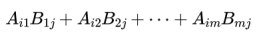 如果A是一个n×m矩阵,B是一个m×k矩阵(注意A的第二维与B的第一维相同),那么它们的乘积AB是n×k矩阵,其中第(i,j)项是: