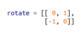 上述代码的作用是按照顺时针方向将向量旋转 90 度,这意味着,对于这个矩阵来说,只有一个向量能够映射到自身的数乘上面,这个向量就是零向量。如果你执行 find_ eigenvector(rotate),它会永远运行下去。即使是具备特征向量的矩阵,有时候也会陷入这种死循环。请看下面的矩阵: