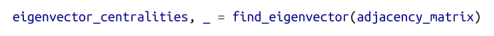 由于远远超出本书范围的技术原因,任何非零邻接矩阵都必须有一个特征向量,其所有的值都是非负的。幸运的是,对于这个adjacency_matrix,我们的find_eigenvector函数可以找到它。