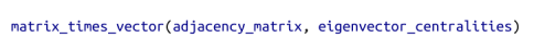 其结果就等于用一个标量去乘以 eigenvector_centralities,如果你了解矩阵乘法的运算机制,就会知道 matrix_operate 求出的向量的第 i 个元素为:
