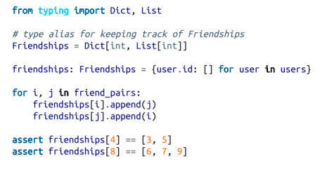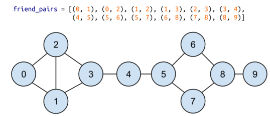 在第一章中,我们通过计算每个用户所拥有的朋友的数量来计算DataSciencester网络中的关键连接器。现在我们有了足够的工具来看看其他的方法。我们将使用相同的网络,但现在我们将对数据使用命名元组。