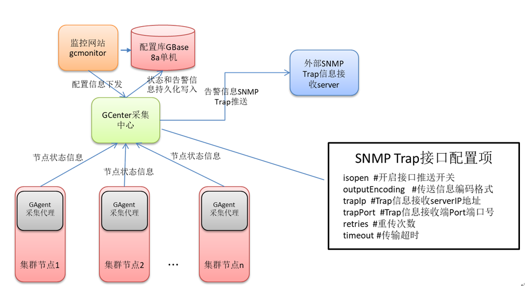 开启gcmonitor监控系统的SNMP Trap推送功能,需要修改对应采集中心的配置文件,配置文件位置在采集中心安装目录的 gcmonitor_center/conf/ snmp_udp_config.properties文件