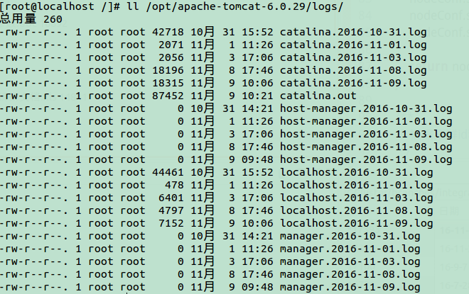 Tomcat 服务器日志文件的位置在 tomcat 目录下 logs 文件夹中,示例如下: