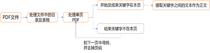 智能分段主要是对文档进行主题分类后,主题模型中将包含各段落以及段落关键词,根据段落关键词对文档的文本内容信息进行切分,从而划分出段落。借助段落定位,我们不仅可以提取到每个段落关键词所对应的正文,还可以提取到当前段落的默认词。默认词可以用于之后的智能补全功能,提高准确性和运行效率。一个段落不仅仅只在一页PDF的情况(即跨页),我们对于这种情况也进行了处理。