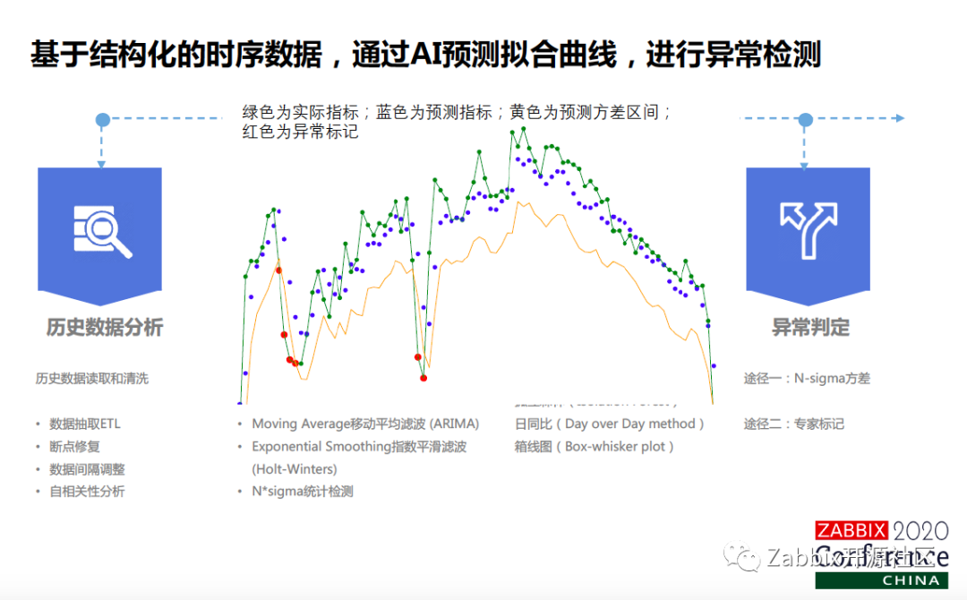 我们研究了一下阈值设定有三个层面,包括规则设定,大家拍脑子,CPO利用率大于95%普遍都觉得有问题,到通过大数据分析,我看了一下历史的三个月,这个系统核心KPI指标跑在哪儿,最后就是智能化的阈值预定,这个业界普遍叫做指标的异常检测。