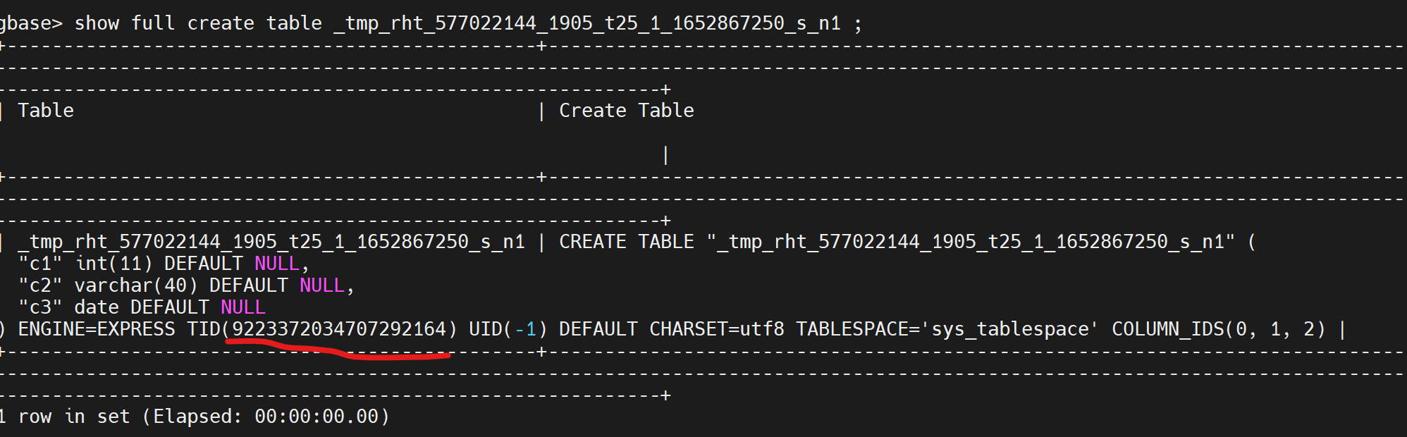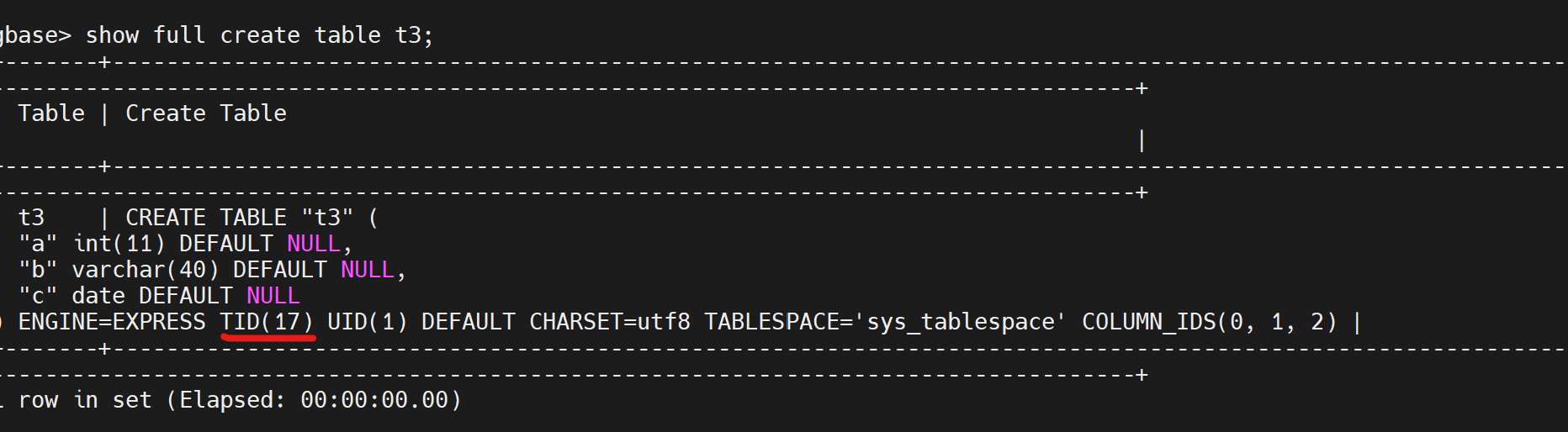 tableid是表的id,是表唯一标识。在GBase8a mpp中索引表的数据、表状态管理、fevent的设置、恢复,节点替换等均使用tableid。Tableid 贯穿了express引擎表整个生命周期内的各个操作。