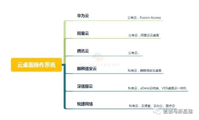 目前云操作系统最常见的产品应用形态为云平台系统+云桌面系统,它是全面云化最核心的支撑点。目前主流云操作系统厂商如中国电子云、阿里云、华为云、腾讯云、深信服云、华云等。云操作系统的落地为政企实现数字化转型提供了便捷,它是信息化升级的关键支撑,它是生态繁荣的中枢,它是安全可靠的盾牌。