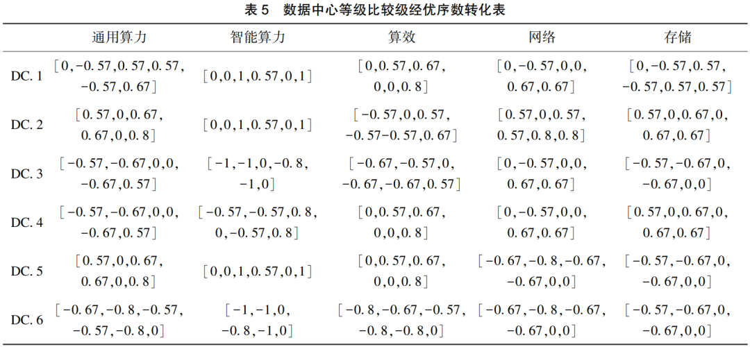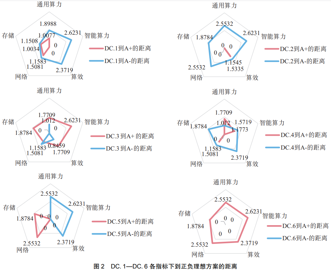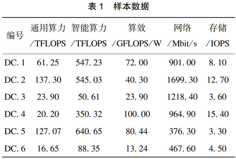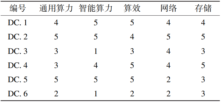 多属性群决策[4-7](Multi-Attribute Group Decision Making,MAGDM)是多属性决策(Multi-Attribute Decision Making,MADM)和群体决策(Group Decision Making,GDM)交叉的研究方向,是现代决策科学的一个重要研究领域,其理论和方法已广泛应用于城市规划、经济管理、投资风险等领域。当下,对于不同数据中心间算力综合各类指标的评估问题可以归结为多属性群决策问题。为了综合评价算力,本文提出“算力五力模型”,将与数据中心计算能力高度相关的通用算力、智能算力、算效能力、存储能力、网络能力等不同量纲的指标进行融合比对,利用新的双向投影法[8]及TOPSIS方法[9-11]计算得到样本的相对贴近度,进而对不同样本的算力进行定级,解决了不同量纲变量难以直接比较的困难,提高了评估结果的综合性和有效性。本文为算力评估体系提供新的模型和方法,更好地指导和建议业界判断行业发展趋势,为未来算力规划和部署提供思路。