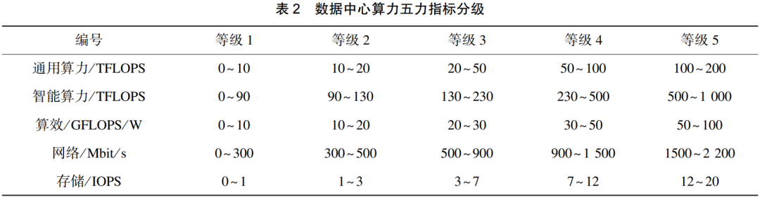 对于算力如何度量和表示,业界一直在不断地探索。从狭义上讲,算力是服务器通过对数据进行处理后实现结果输出的一种能力,目前为止使用最广泛的算力表示方法为“浮点运算次数”。每秒浮点运算次数(Floating-Point Operations Per Second,FLOPS)概念最早由Frank H.McMahon[1]在其报告中提出。国内外不少文献以及服务器产品参数都采用浮点运算次数对算力进行描述。例如,Yifan Sun[2]等使用FLOPS作为度量标准,评估CPU和GPU的单精度和双精度计算能力。从广义上讲,算力是一个包含计算、存储、传输(网络)等多个内涵的综合概念,是衡量数据中心计算能力的一个综合指标[3],所以目前亟需一个科学的方法来将算力的内涵充分表达出来。