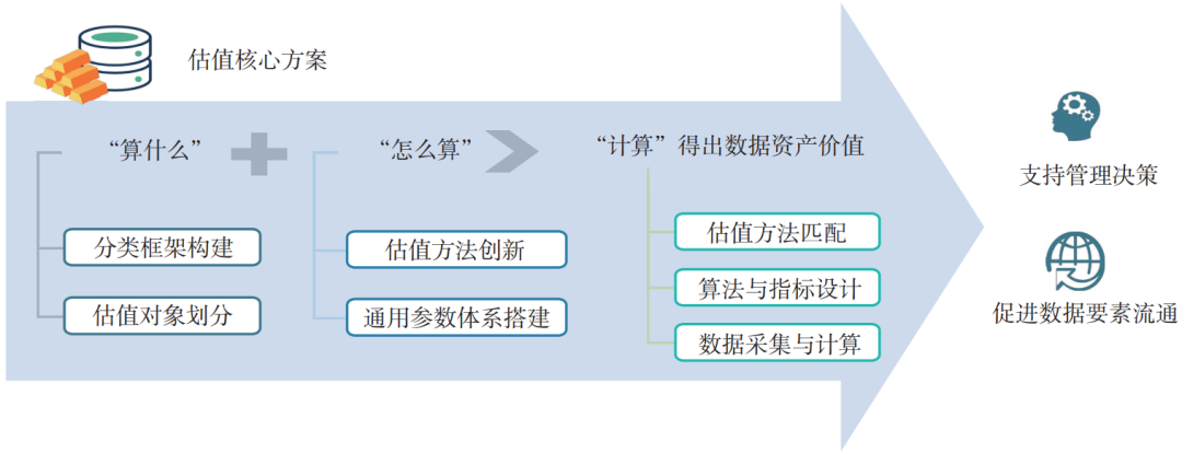 随着数据在推动产业升级和千行百业的数字化转型过程中持续发挥不可替代的作用,加快数据要素流转交易、激发数据资产价值转化,已经成为未来数字中国建设的关键引擎。与土地、劳动力、资本等其他市场化生产要素不同,我国数据要素的市场化水平仍处于初级阶段,在共享、交易流通等方面仍面临诸多挑战。数据确权、数据估值、数据交易是数据要素市场化的三大关键点,其中数据资产估值为数据要素流通提供价值衡量基础,对数据资产价值进行估值及进一步定价,为推动数据要素市场建设将起到积极的作用。数据资产的价值一直以来都是用“黄金数据”“数据使用”“高价值数据”等进行定性描述,数据资产货币化度量能够有效助力科学、高效地计量数据资产价值,统一数据价值认知,推动数据在各个业务环节发挥潜在价值,并进一步完善数据资产管理体系。